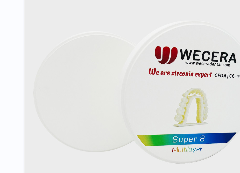 En resumen, el bloque de zirconio multicapa Wecera Super 8 3d es una excelente opción para los profesionales dentales que buscan un material confiable y de alto rendimiento para cerámicas dentales de zirconio.Su calidad certificada, la compatibilidad con los sistemas de fresado más avanzados y su aspecto natural lo hacen indispensable en diversas ocasiones y escenarios de aplicación dental, desde restauraciones rutinarias hasta rehabilitaciones complejas.