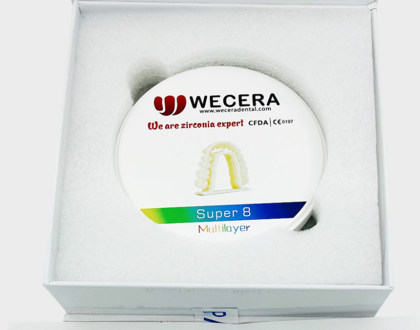 En general, el disco de zirconia multicapa Wecera Super 8 es una excelente opción para especialistas dentales que buscan un bloque de zirconia dental confiable, certificado y de alto rendimiento que se integre perfectamente con los sistemas CAD/CAM modernos para ofrecer resultados excepcionales a los pacientes.